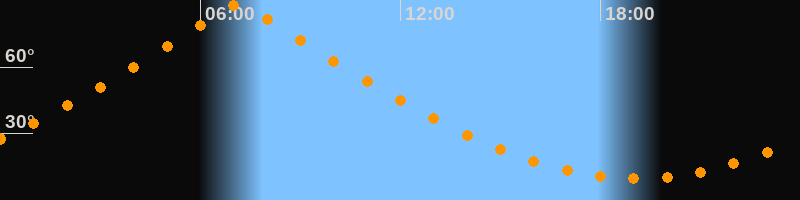 | Höchster Stand (Kulmination) | 07:08 Uhr (h = 88,3°) |