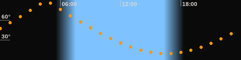 | Höchster Stand (Kulmination) | 04:33 Uhr (h = 88,3°) |
