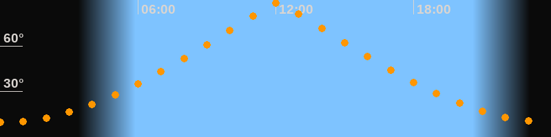 | Höchster Stand (Kulmination) | 12:04 Uhr (h = 88,3°) |