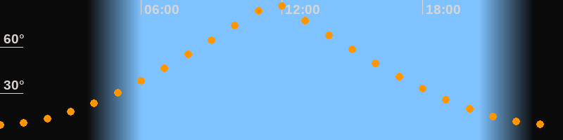 | Höchster Stand (Kulmination) | 11:40 Uhr (h = 88,3°) |