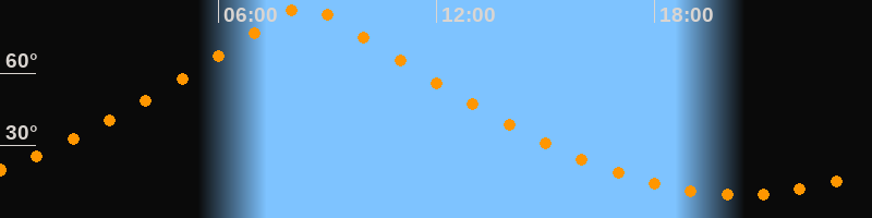 | Höchster Stand (Kulmination) | 08:23 Uhr (h = 88,3°) |