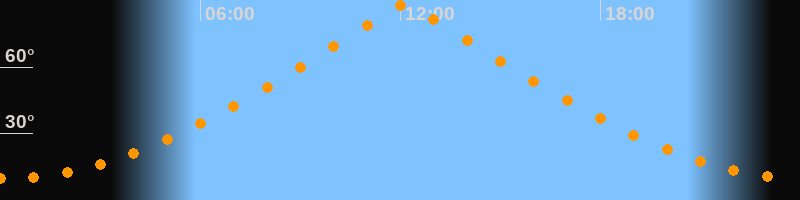 | Höchster Stand (Kulmination) | 12:09 Uhr (h = 88,3°) |