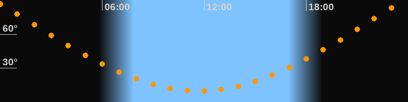 | Höchster Stand (Kulmination) | 23:40 Uhr (h = 88,3°) |