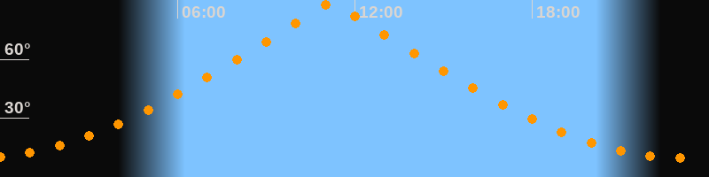 | Höchster Stand (Kulmination) | 11:11 Uhr (h = 88,3°) |