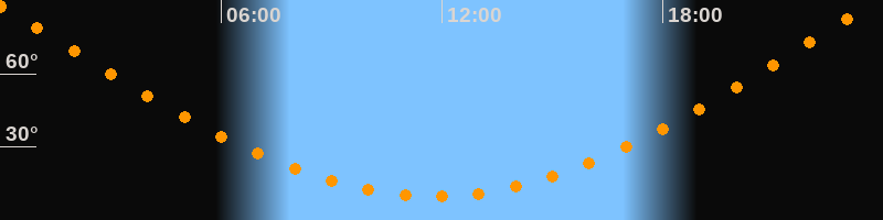 Höchster Stand (Kulmination)23:45 Uhr (h = 88,3°)