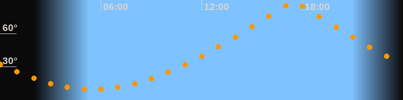 | Höchster Stand (Kulmination) | 17:29 Uhr (h = 88,3°) |