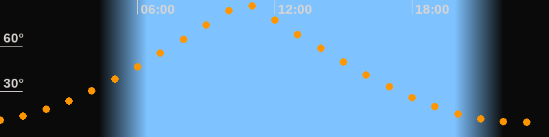 | Höchster Stand (Kulmination) | 10:40 Uhr (h = 88,3°) |