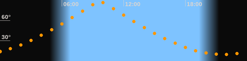 | Höchster Stand (Kulmination) | 09:41 Uhr (h = 88,3°) |