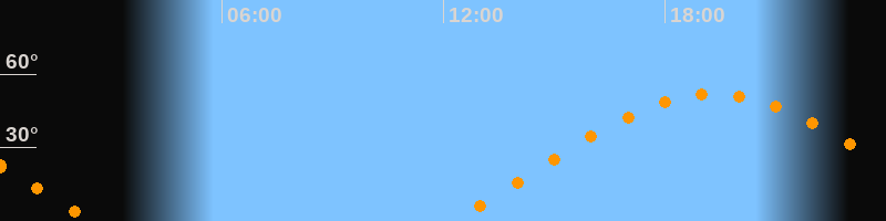 | Aufgang | 12:13 Uhr im Osten (αAz = 69,1°) |