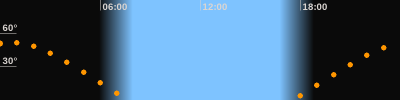 | Aufgang | 17:29 Uhr im Osten (αAz = 69,1°) |