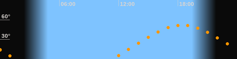 | Aufgang | 11:20 Uhr im Osten (αAz = 69,1°) |