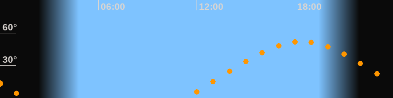 | Aufgang | 11:16 Uhr im Osten (αAz = 69,1°) |