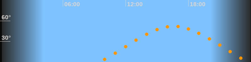 | Aufgang | 09:30 Uhr im Osten (αAz = 69,1°) |