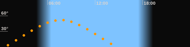 | Aufgang | 00:29 Uhr im Osten (αAz = 69,1°) |