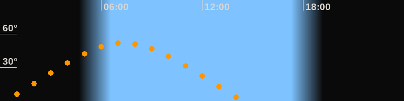 | Aufgang | 00:11 Uhr im Osten (αAz = 69,1°) |