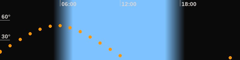 | Aufgang | 22:33 Uhr im Osten (αAz = 69,1°) |