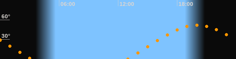 | Aufgang | 12:55 Uhr im Osten (αAz = 69,1°) |