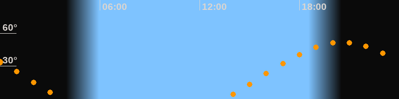 | Aufgang | 13:27 Uhr im Osten (αAz = 69,1°) |