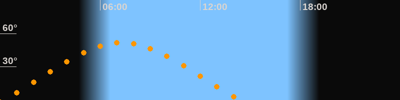 | Aufgang | 00:07 Uhr im Osten (αAz = 69,1°) |