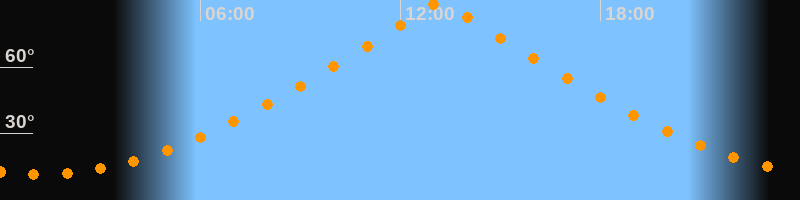 | Höchster Stand (Kulmination) | 13:11 Uhr (h = 89,7°) |