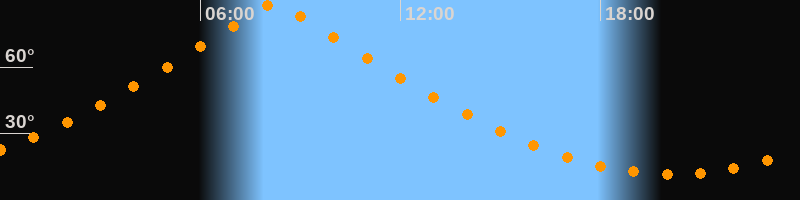 | Höchster Stand (Kulmination) | 08:13 Uhr (h = 89,7°) |