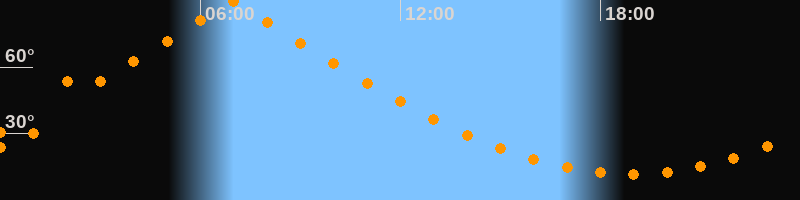 | Höchster Stand (Kulmination) | 06:57 Uhr (h = 89,7°) |