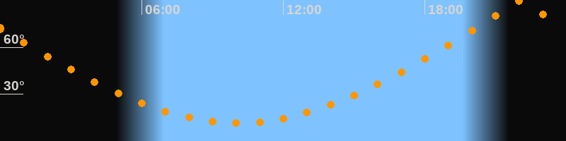 | Höchster Stand (Kulmination) | 22:03 Uhr (h = 89,7°) |