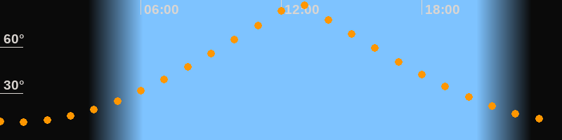 | Höchster Stand (Kulmination) | 12:41 Uhr (h = 89,7°) |