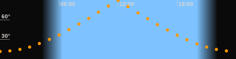 | Höchster Stand (Kulmination) | 11:58 Uhr (h = 89,7°) |