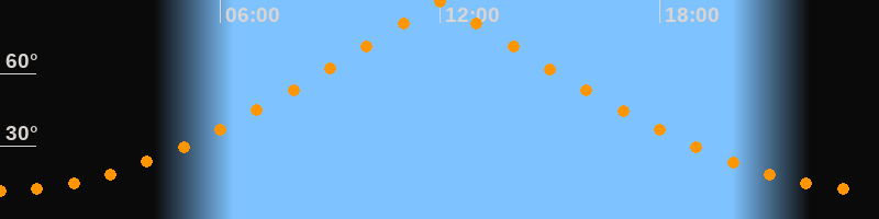 | Höchster Stand (Kulmination) | 11:59 Uhr (h = 89,7°) |