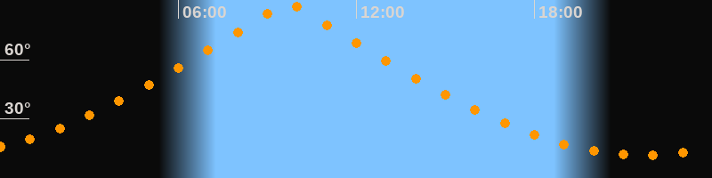 | Höchster Stand (Kulmination) | 09:41 Uhr (h = 89,7°) |