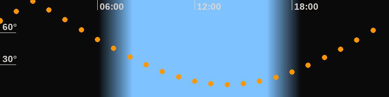 | Höchster Stand (Kulmination) | 02:04 Uhr (h = 89,7°) |