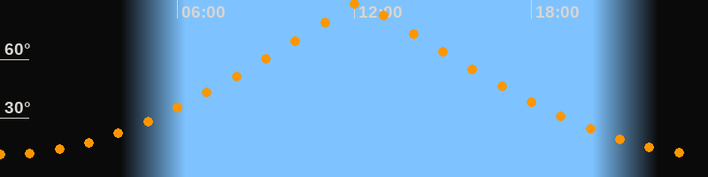 | Höchster Stand (Kulmination) | 12:11 Uhr (h = 89,7°) |