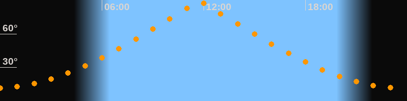 | Höchster Stand (Kulmination) | 11:44 Uhr (h = 89,7°) |