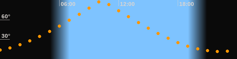 | Höchster Stand (Kulmination) | 10:17 Uhr (h = 89,7°) |