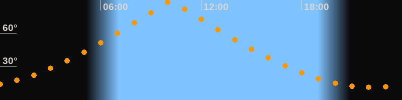 | Höchster Stand (Kulmination) | 10:10 Uhr (h = 89,7°) |