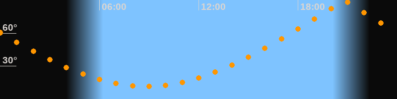 | Höchster Stand (Kulmination) | 20:47 Uhr (h = 89,7°) |