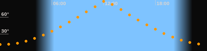 | Höchster Stand (Kulmination) | 12:12 Uhr (h = 89,7°) |