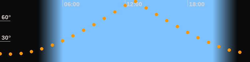 | Höchster Stand (Kulmination) | 12:49 Uhr (h = 89,7°) |
