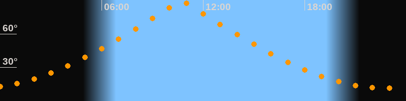 | Höchster Stand (Kulmination) | 10:43 Uhr (h = 89,7°) |