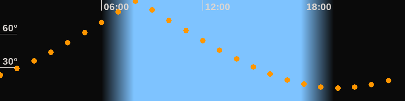 | Höchster Stand (Kulmination) | 08:06 Uhr (h = 89,7°) |