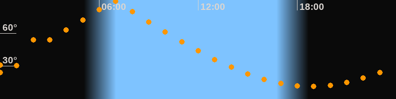 | Höchster Stand (Kulmination) | 06:54 Uhr (h = 89,7°) |