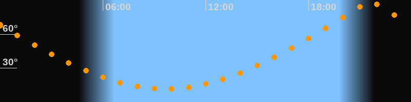 | Höchster Stand (Kulmination) | 21:37 Uhr (h = 89,7°) |