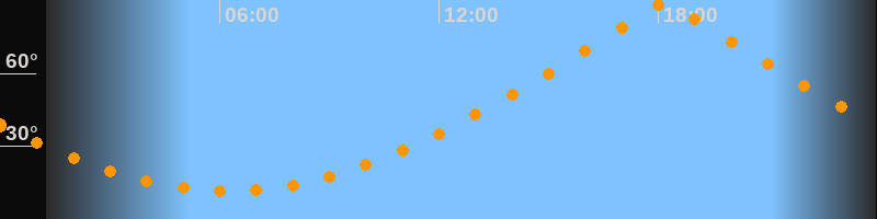 | Höchster Stand (Kulmination) | 18:12 Uhr (h = 89,7°) |