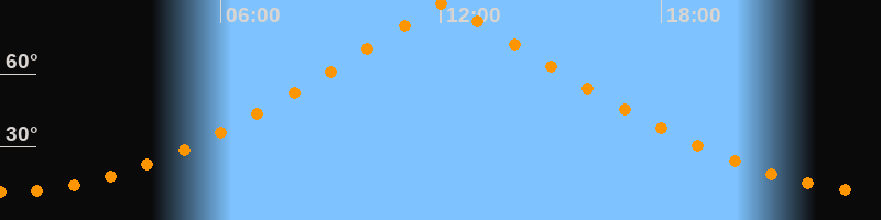 | Höchster Stand (Kulmination) | 12:06 Uhr (h = 89,7°) |