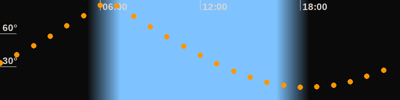 | Höchster Stand (Kulmination) | 06:27 Uhr (h = 89,7°) |