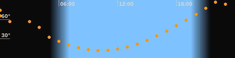 | Höchster Stand (Kulmination) | 22:19 Uhr (h = 89,7°) |