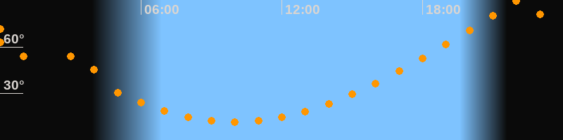 | Höchster Stand (Kulmination) | 22:01 Uhr (h = 89,7°) |