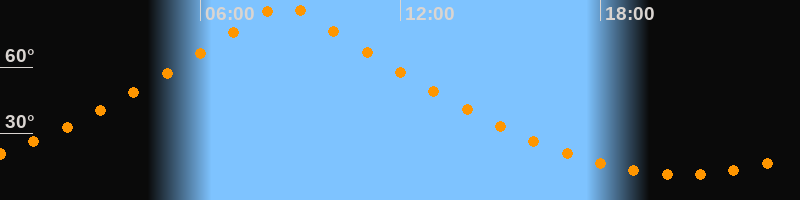 | Höchster Stand (Kulmination) | 08:31 Uhr (h = 89,7°) |