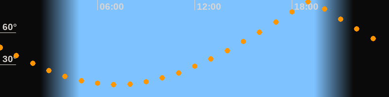 | Höchster Stand (Kulmination) | 19:09 Uhr (h = 89,7°) |